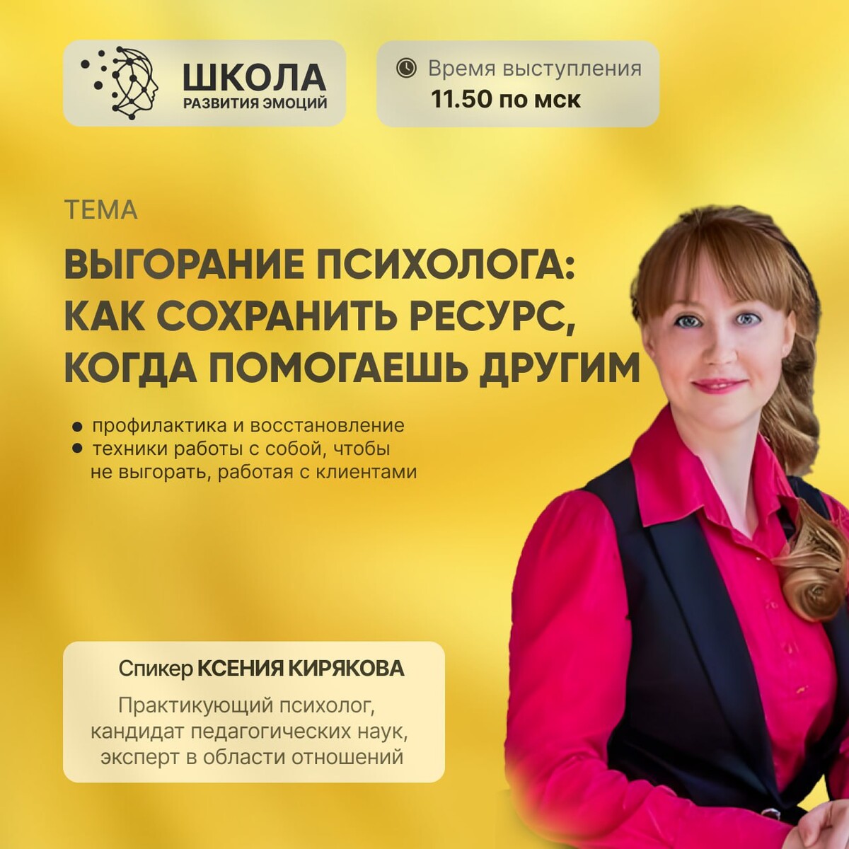Тема: «Выгорание психолога: как сохранить ресурс, когда помогаешь другим» – профилактика и восстановление, техники работы с собой, чтобы не выгорать, работая с клиентами.